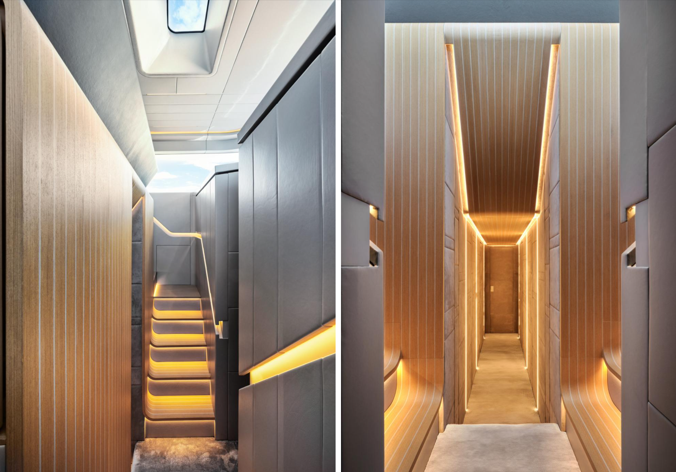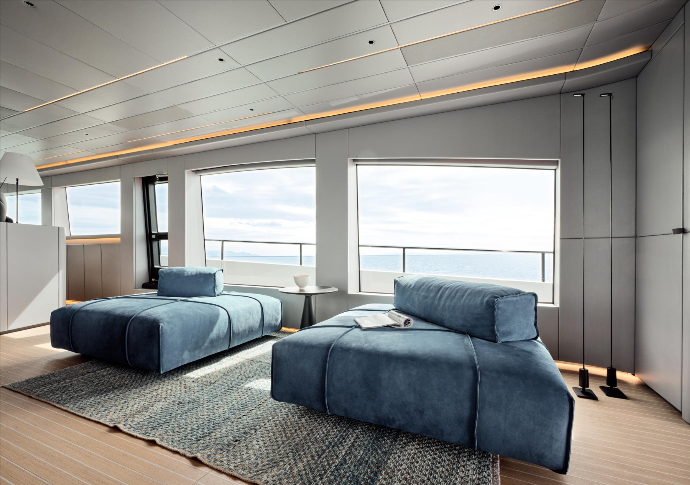 Outside, expansive decks invite you to unwind in style, whether sunbathing on the bow, enjoying alfresco dining aft or dancing under the stars on the flybridge. A full audio-visual system, smart home tech and ambient sound zones across all decks make entertaining effortless.
