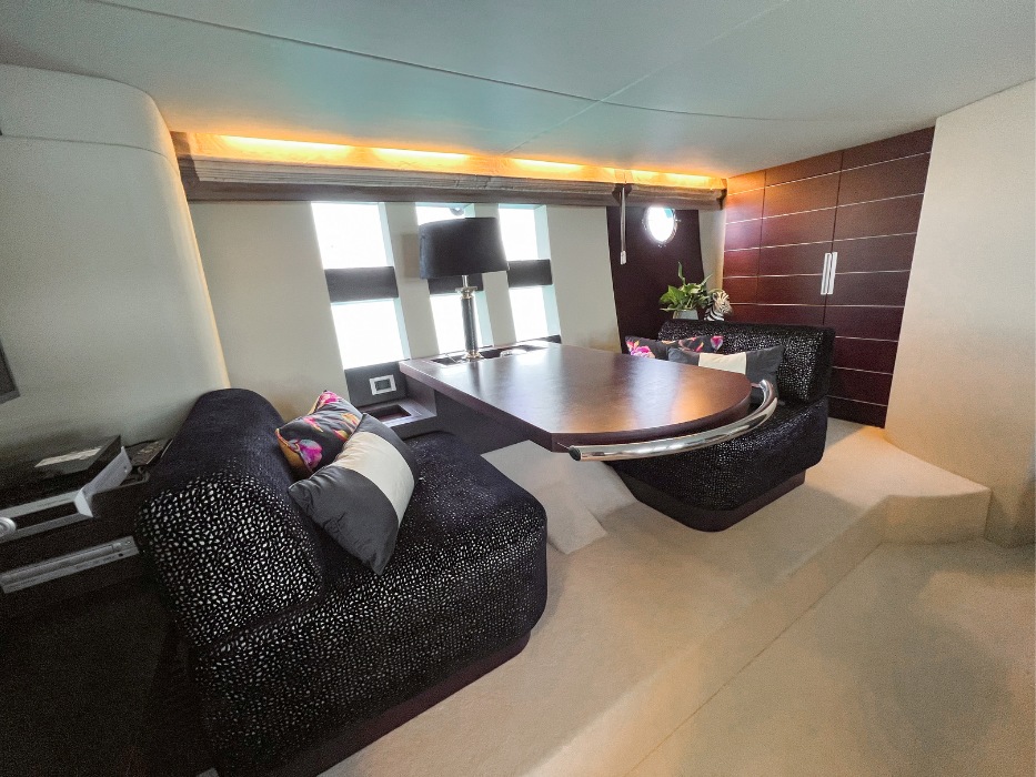 The yacht features three comfortable cabins, all en-suite, designed to provide the utmost in luxury and comfort. The master cabin is equipped with a double bed, the VIP cabin offers a spacious double bed and the twin cabin features two single beds. Ideal for up to 10 guests for day charters and accommodating 4 for overnight stays, “Naughty Girl” offers ample space and privacy for everyone on board.