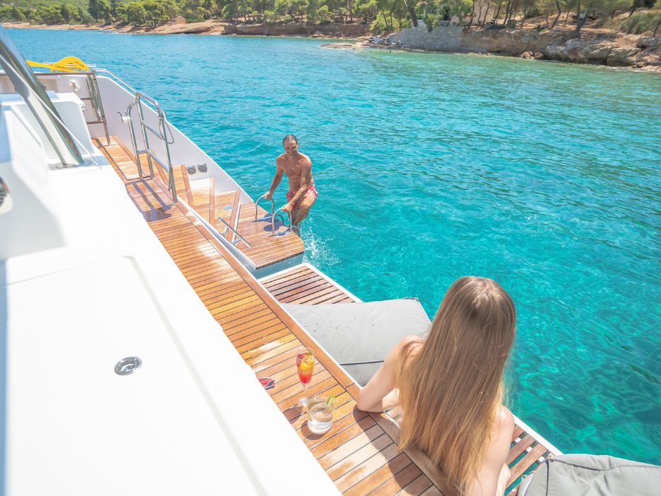 D2 isn’t just a power catamaran—it’s your gateway to a world of exploration and connection. With a vast reception area, a large selection of water toys for the most active charter guests, and mesmerizing underwater lights, every moment aboard promises to be extraordinary.