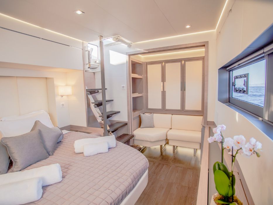 Indulge in the opulence of the 22 sq.m Master Suite, offering unparalleled comfort and privacy. Unwind in the jacuzzi located in the front lounge, the perfect spot for ultimate relaxation while enjoying breathtaking views. The expansive 32 sq.m flybridge provides an idyllic setting for unforgettable social gatherings and celebrations.