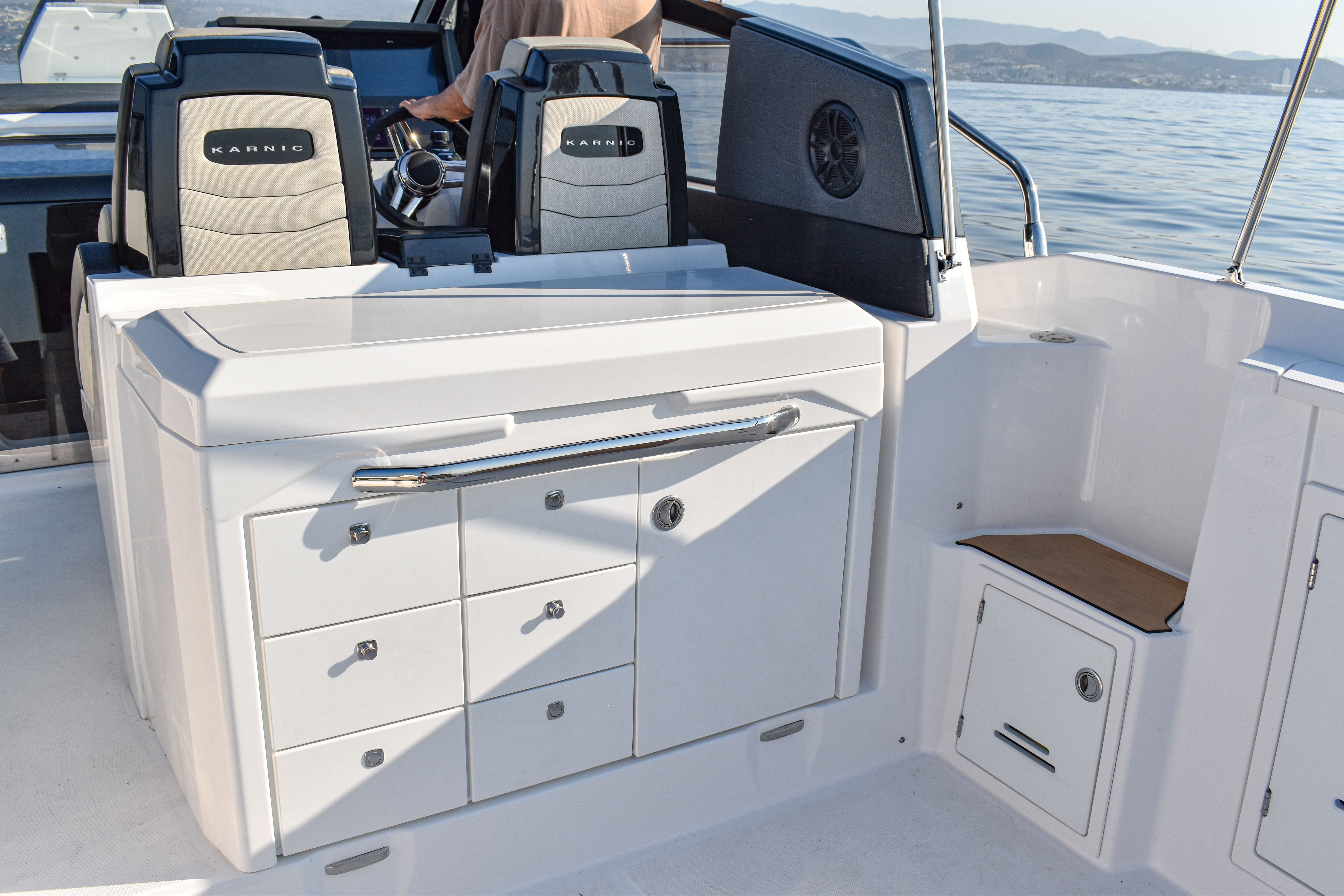 The Karnic CS10 is the newest addition to our fleet, designed to deliver the perfect mix of sleek style, comfort and functionality on the water. With spacious outdoor seating, a generous sunbathing area and a large swim platform at the stern, this yacht is ideal for relaxed cruising, swimming and socializing.