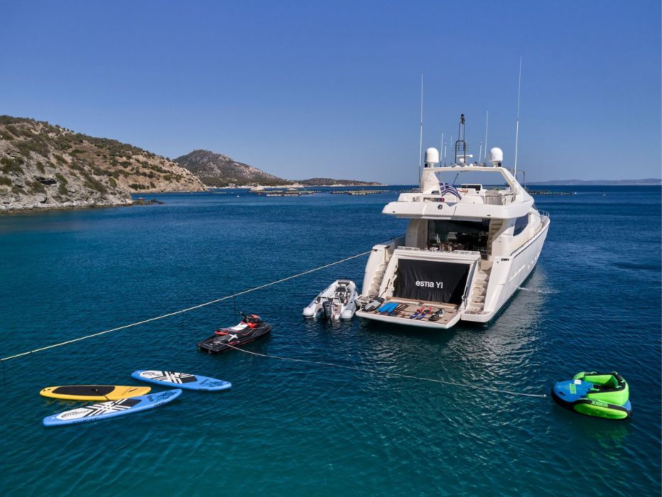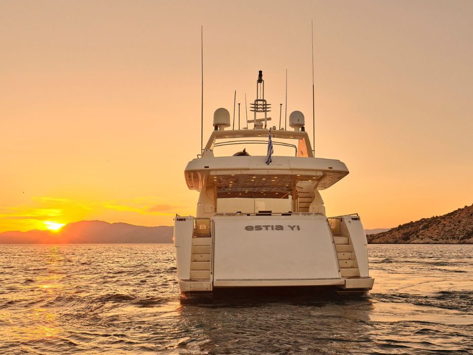 Available year-round in the enchanting waters of the Mediterranean, Estia Yi promises an unforgettable charter experience. With her exceptional amenities, sophisticated design, and dedicated crew, this motor yacht is the perfect platform to discover the region’s magical destinations, exquisite cuisine, and rich culture, creating memories that will last a lifetime.