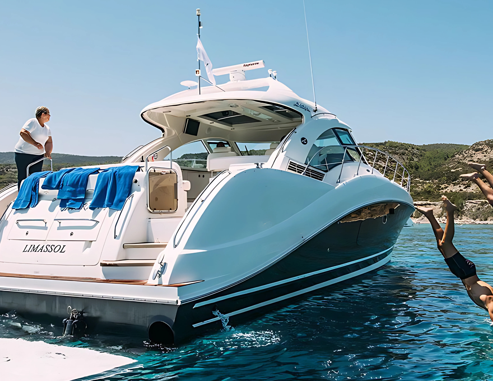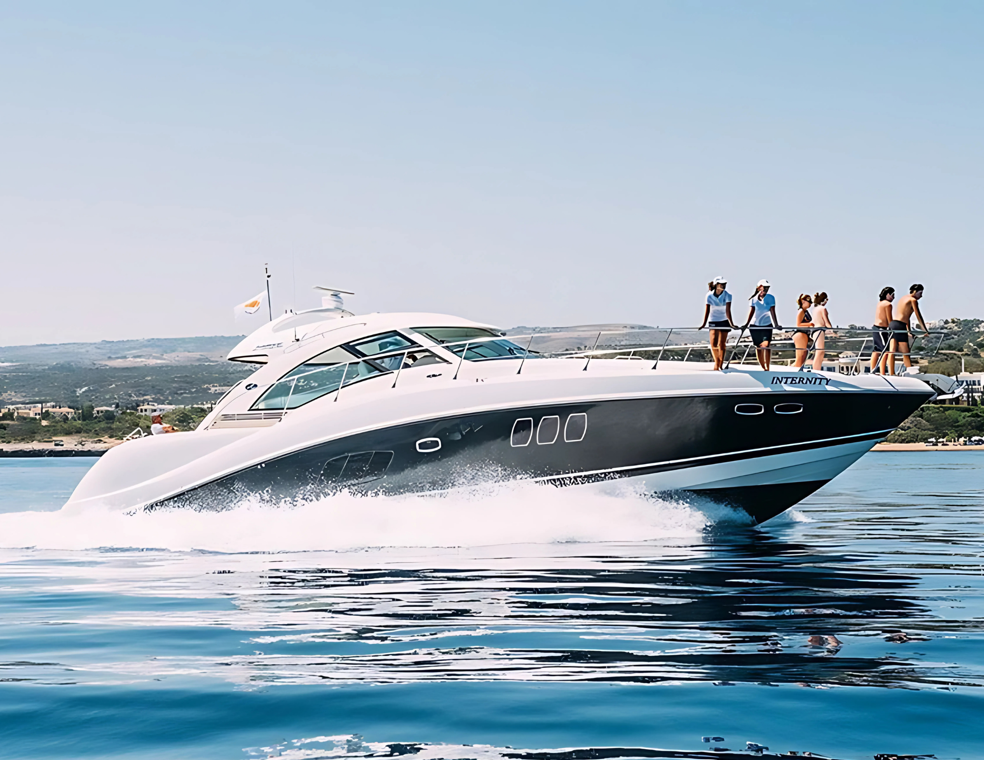 Step aboard Internity, a sleek and spacious Sea Ray 62 designed for unforgettable days at sea with family, friends or colleagues. Measuring 18.2 meters in length, this motor yacht offers the perfect blend of luxury, comfort and performance, cruising smoothly at 25 knots along the stunning coastline of Latchi.