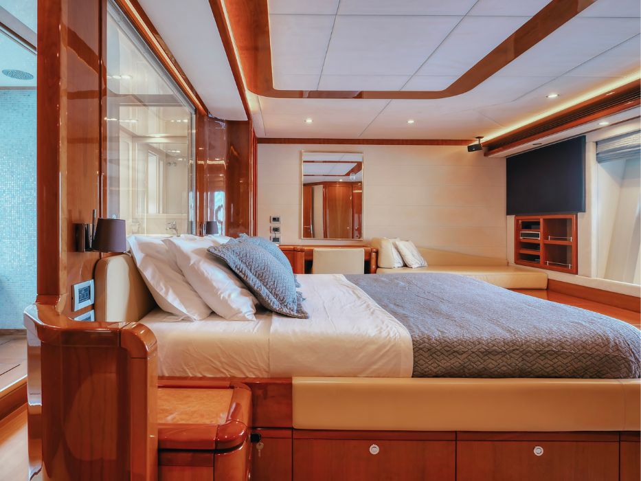 The 25.3m/83′ motor yacht Lidia, crafted by the esteemed Italian shipyard Ferretti Yachts in 2006, is a masterpiece of elegance and functionality. With luxurious interior styling by renowned designer Zuccon, Lidia seamlessly combines clever use of space with state-of-the-art systems, creating a perfect setting for relaxation and entertainment. Accommodating up to 8 guests in 4 beautifully appointed suites, including a master suite and two VIP cabins, she offers a harmonious balance of comfort and sophistication. With 3 doubles and 3 singles among her six beds, along with a dedicated crew of 4, Lidia ensures an effortless and indulgent charter experience.