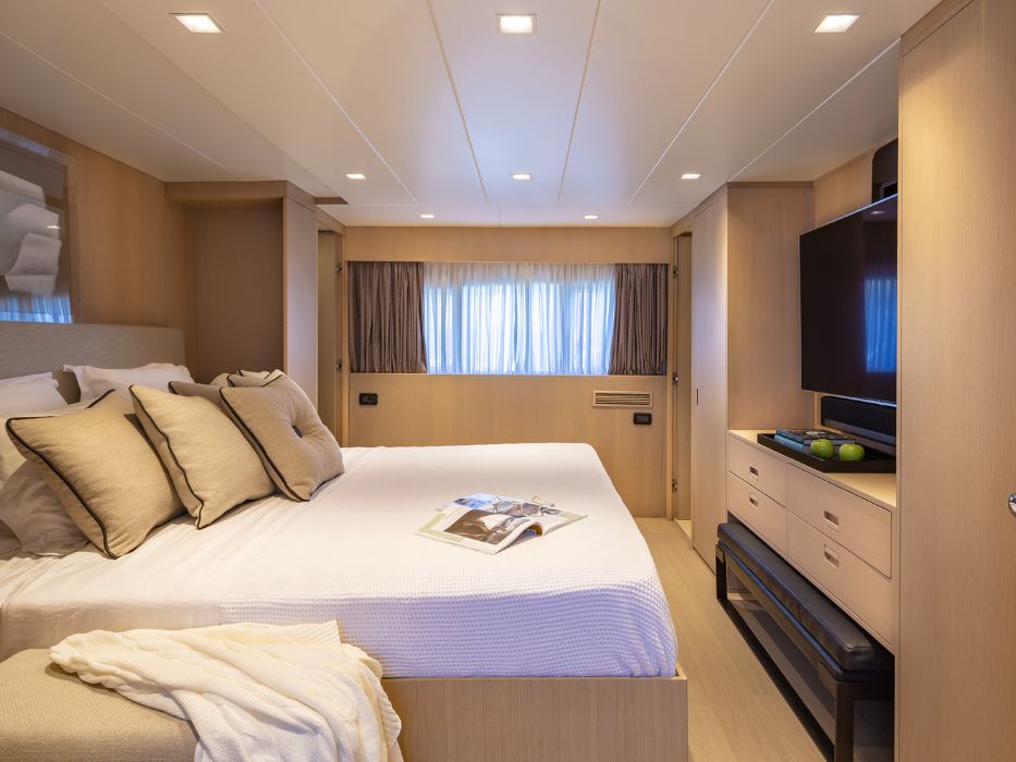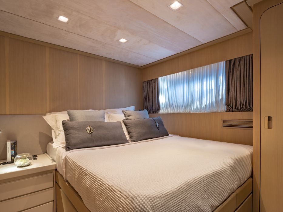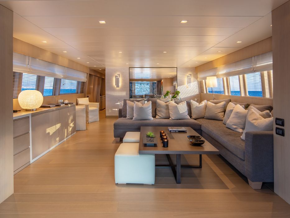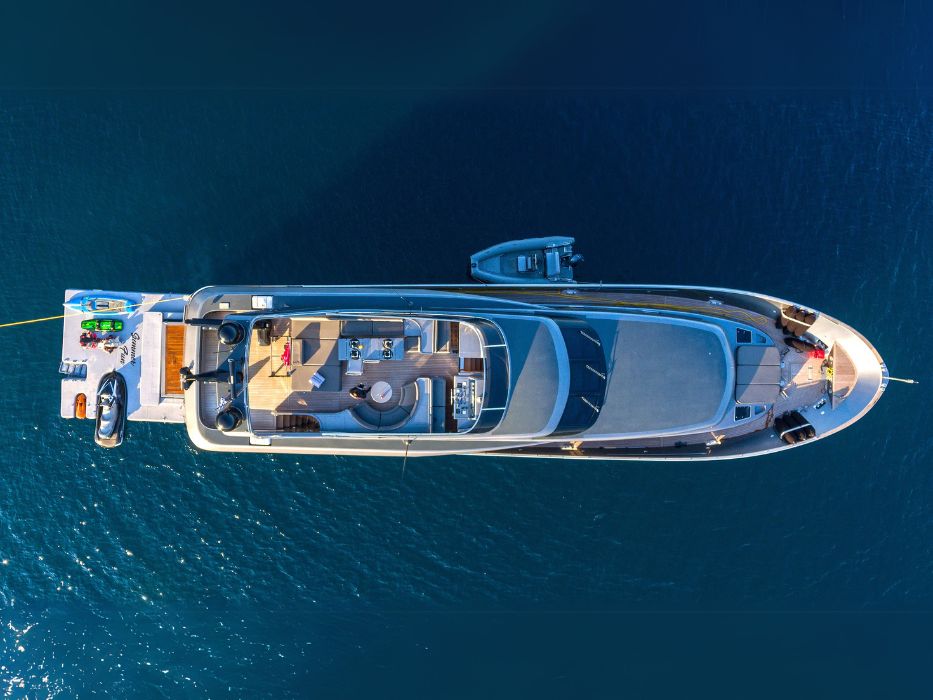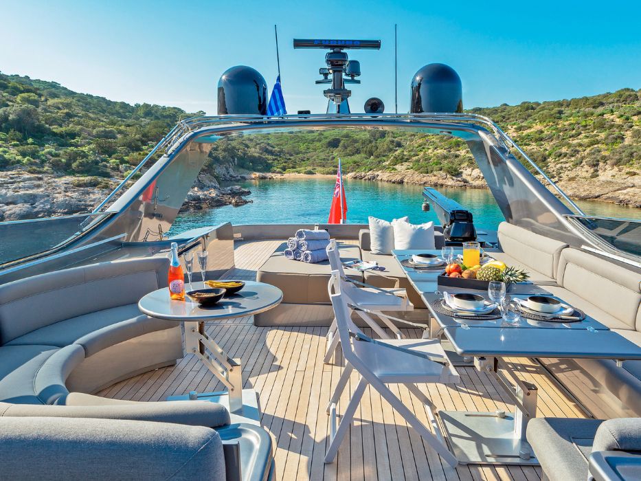 Powered by twin MTU engines and featuring a lightweight aluminum hull and superstructure, Summer Fun combines impressive performance with exceptional efficiency. She cruises effortlessly at 23 knots and reaches a thrilling top speed of 29 knots, with a range of 1,152 nautical miles, making her an ideal choice for island-hopping or extended charters.
