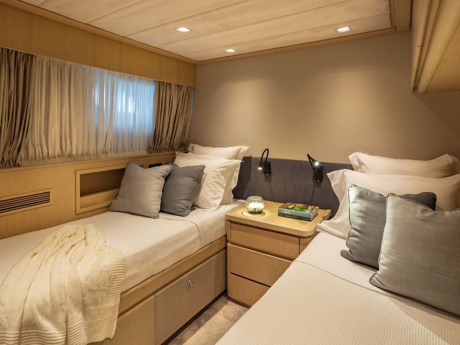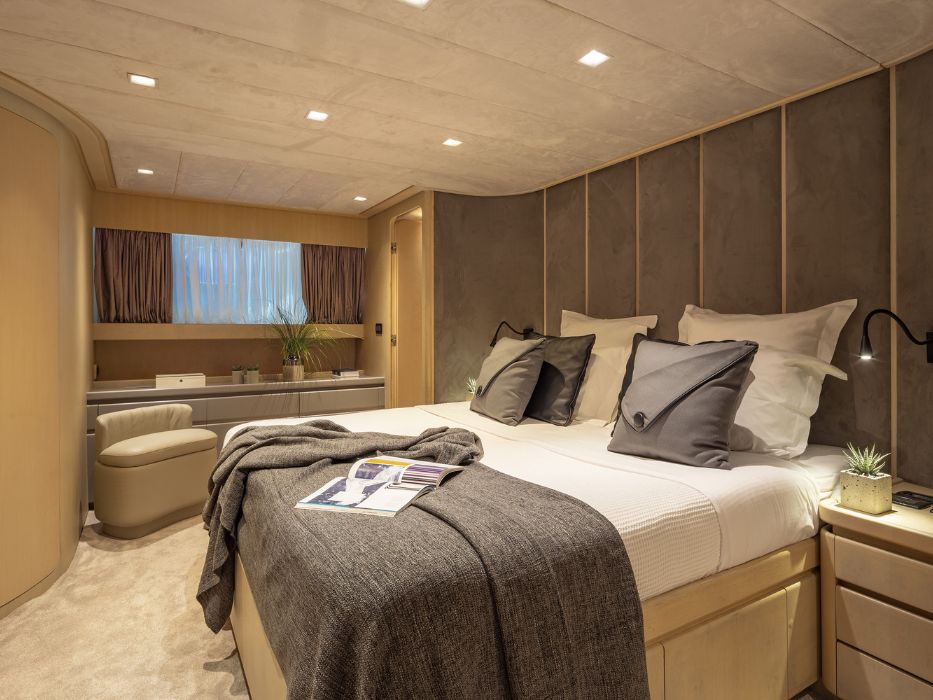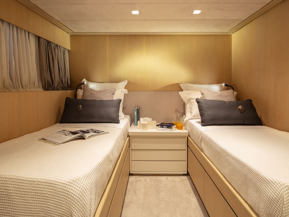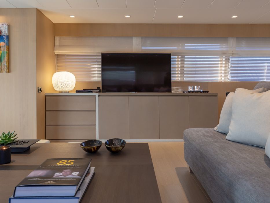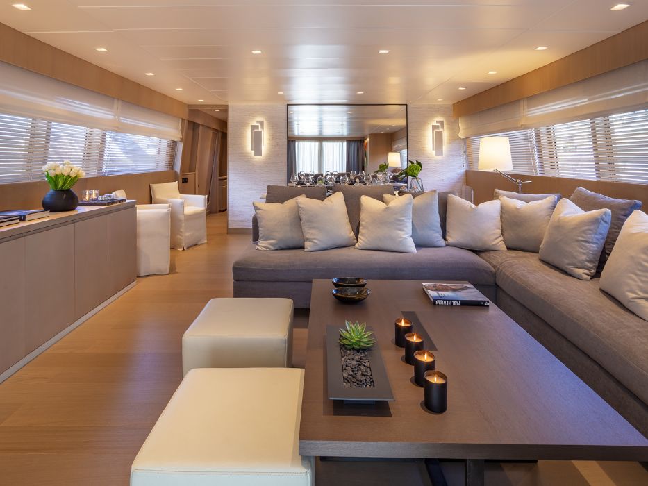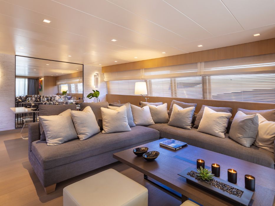 Powered by twin MTU engines and featuring a lightweight aluminum hull and superstructure, Summer Fun combines impressive performance with exceptional efficiency. She cruises effortlessly at 23 knots and reaches a thrilling top speed of 29 knots, with a range of 1,152 nautical miles, making her an ideal choice for island-hopping or extended charters.