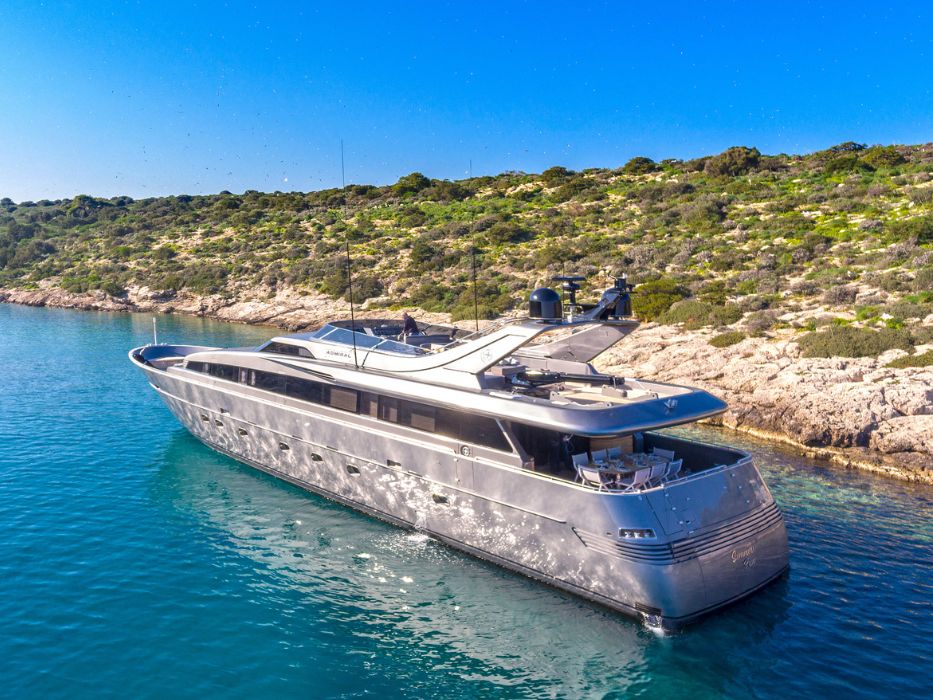 The 30.85m motor yacht Summer Fun, crafted by the prestigious Italian shipyard Admiral Yachts in 2001, offers an unparalleled charter experience for up to 12 guests across six luxurious cabins. Designed with bespoke fittings and elegant styling, Summer Fun provides the perfect blend of comfort and sophistication, ensuring guests can explore the Mediterranean’s breathtaking beauty in absolute style. Her accommodations include a master suite on the main deck, two VIP cabins, and a double cabin, with a total of eight beds, including one king, three doubles, and two convertible options. A professional crew of seven is on board to deliver an exceptional and stress-free charter experience.