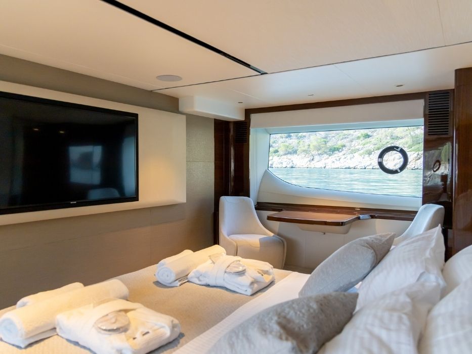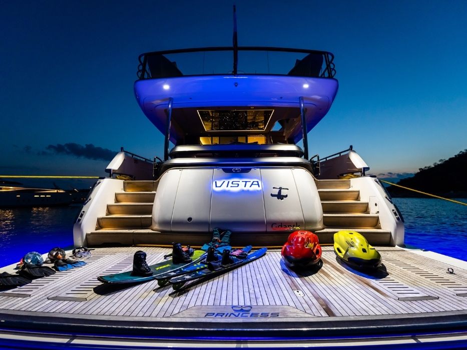 The 26.2m motor yacht Vista, crafted by the renowned British shipyard Princess and built in 2020, is the epitome of luxury and sophistication. Designed to deliver an unparalleled charter experience, Vista comfortably accommodates up to 8 guests in 5 elegantly appointed suites, ensuring a serene and stylish retreat at sea. With a dedicated crew of 4, every detail of your journey is meticulously attended to, offering a relaxed and seamless luxury yacht charter.