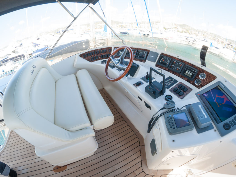 This 15.9-meter motor yacht accommodates up to 20 guests and features three elegant cabins, two of them with en-suite bathrooms, and a sleek, air-conditioned saloon perfect for dining, relaxing or drying off after a swim. Outside, sunbathing areas on both the bow and stern let you soak up the Mediterranean rays in complete comfort.