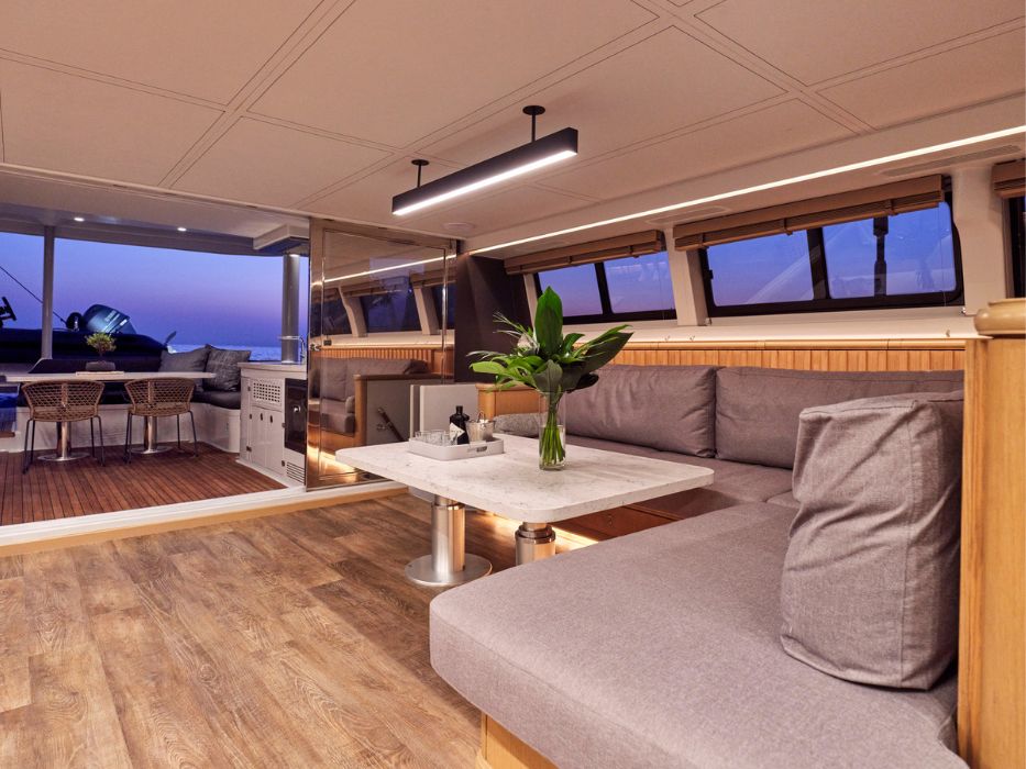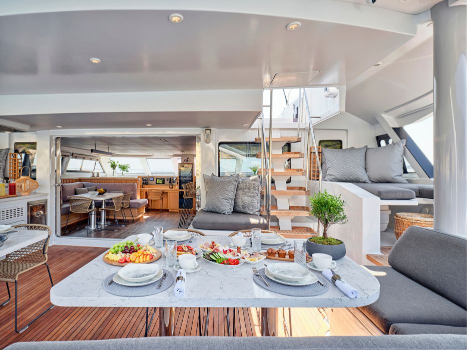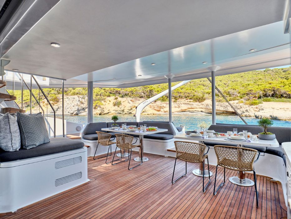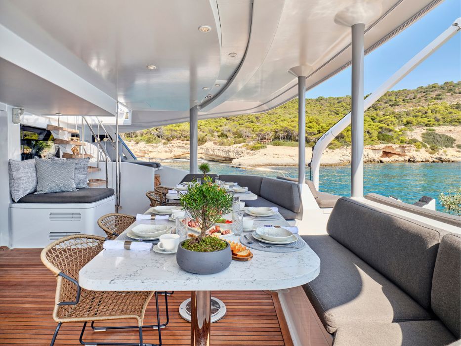 Experience the extraordinary aboard Sameli, a 75.6-foot (23-meter) fly-bridge catamaran meticulously crafted by Balance/Two Oceans Marine. Designed for both thrilling sailing adventures and unparalleled onboard luxury, she redefines the boundaries of performance and comfort, offering an unforgettable experience for even the most discerning guests. Engineered to reach sailing speeds of 12-15 knots with ease—and even achieving an astounding 25 knots—this catamaran stands as a testament to groundbreaking design and performance. Whether cruising along serene coastlines or charting ambitious courses, Two Oceans Marine delivers both speed and grace, ensuring you arrive at your destination in style. She offers five impeccably designed cabins, accommodating up to 10 guests in luxurious comfort. Every detail is tailored to enhance your experience, from the premium furnishings to the seamless blend of style and functionality—inviting you to unwind and create memories to last a lifetime.