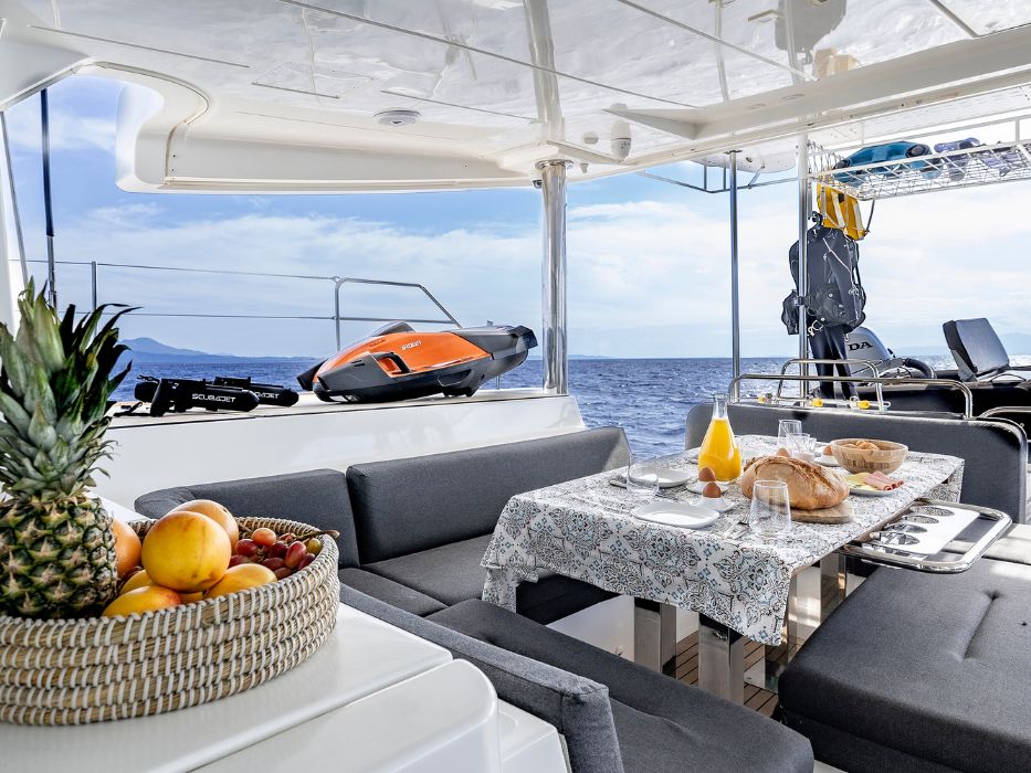 Tamiro, a Lagoon 52F, invites you to explore the serene beauty of the Greek Ionian on a fully crewed, luxurious charter. With a home base in Lefkas or Corfu, this modern catamaran combines innovative eco-friendly technology, superior comfort, and remarkable sailing performance to create an unforgettable yachting experience.
