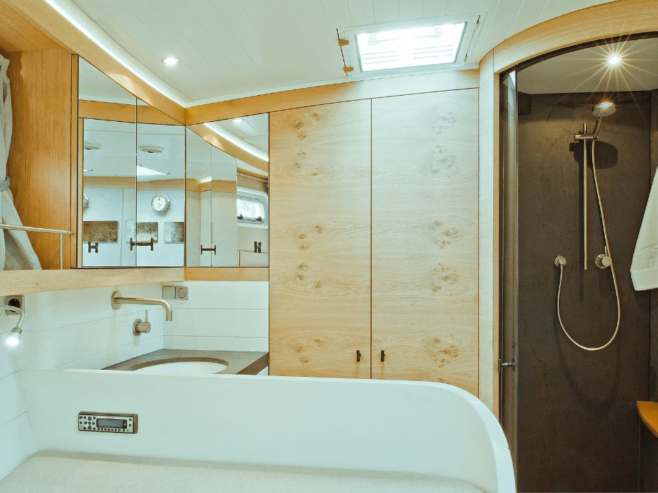 Embark on an extraordinary journey through the Greek islands aboard Helene, an exceptional Opus 68 aluminum ketch designed to deliver supreme luxury and timeless elegance. This unique vessel is the result of a visionary collaboration between the world-renowned naval architect Bill Dixon, Germany’s foremost interior designer Alv Kintscher, and the impeccable craftsmanship of Brune Yachtbau. Helene’s thoughtfully designed interior provides accommodation for up to 7 guests in three beautifully appointed cabins: Master Cabin: Featuring a double bed and a single bed, this spacious suite offers a serene retreat with luxurious amenities. Two Double Guest Cabins: Both elegantly styled, each with en-suite facilities. All cabins are fully air-conditioned, ensuring a restful and comfortable stay, while the use of premium materials and meticulous attention to detail create an ambiance of relaxed sophistication. From her elegant design and luxurious accommodations to her world-class craftsmanship and outstanding sailing performance, Helene is the epitome of style and sophistication. Whether you’re looking to explore the Greek islands with family or friends, she offers a unique opportunity to experience the magic of the Aegean in unparalleled comfort. Step aboard Helene and indulge in a charter experience that promises unforgettable memories, supreme luxury, and a true sense of freedom on the open seas. July August: 16.900€ June September: 15.400€ Low season: 13.200€ *Charter Fee does not include: All Charter Expenses (e.g. fuel consumption, food & drink provisions, port / canal fees, etc.), estimated at 25% of initial charter fee to be provided as APA • Applicable VAT at the time of charter, currently 12% • Crew gratuity if earned recommended 10-15% of the charter fee as per Myba guidelines.